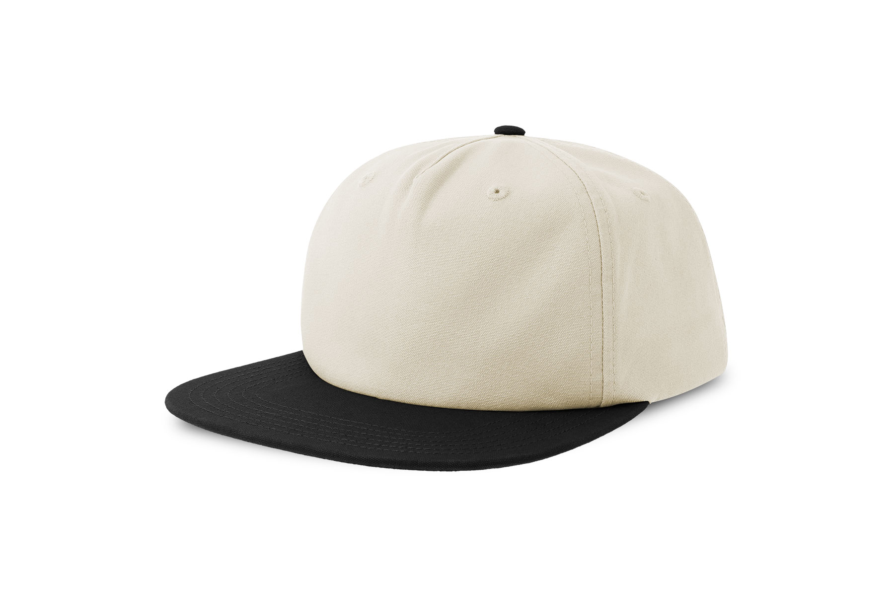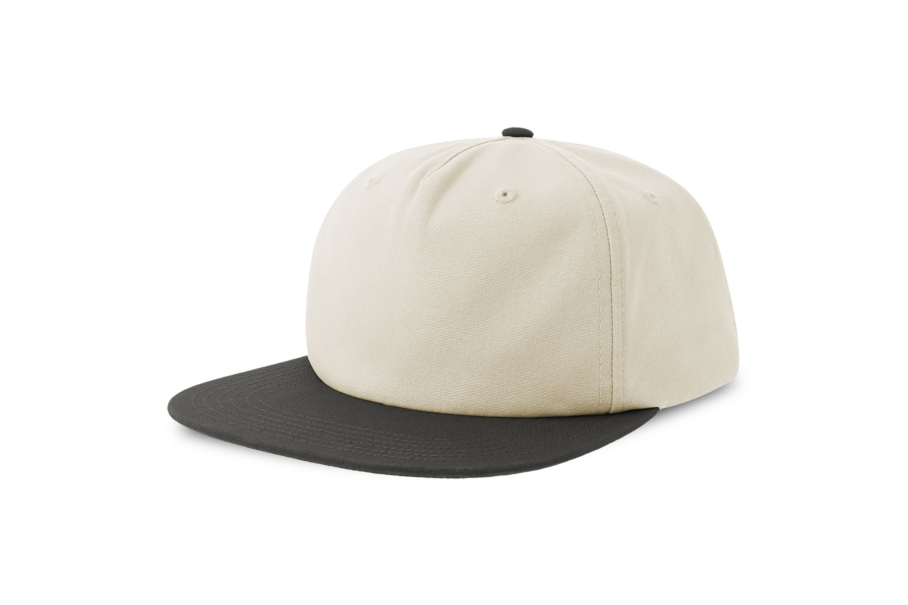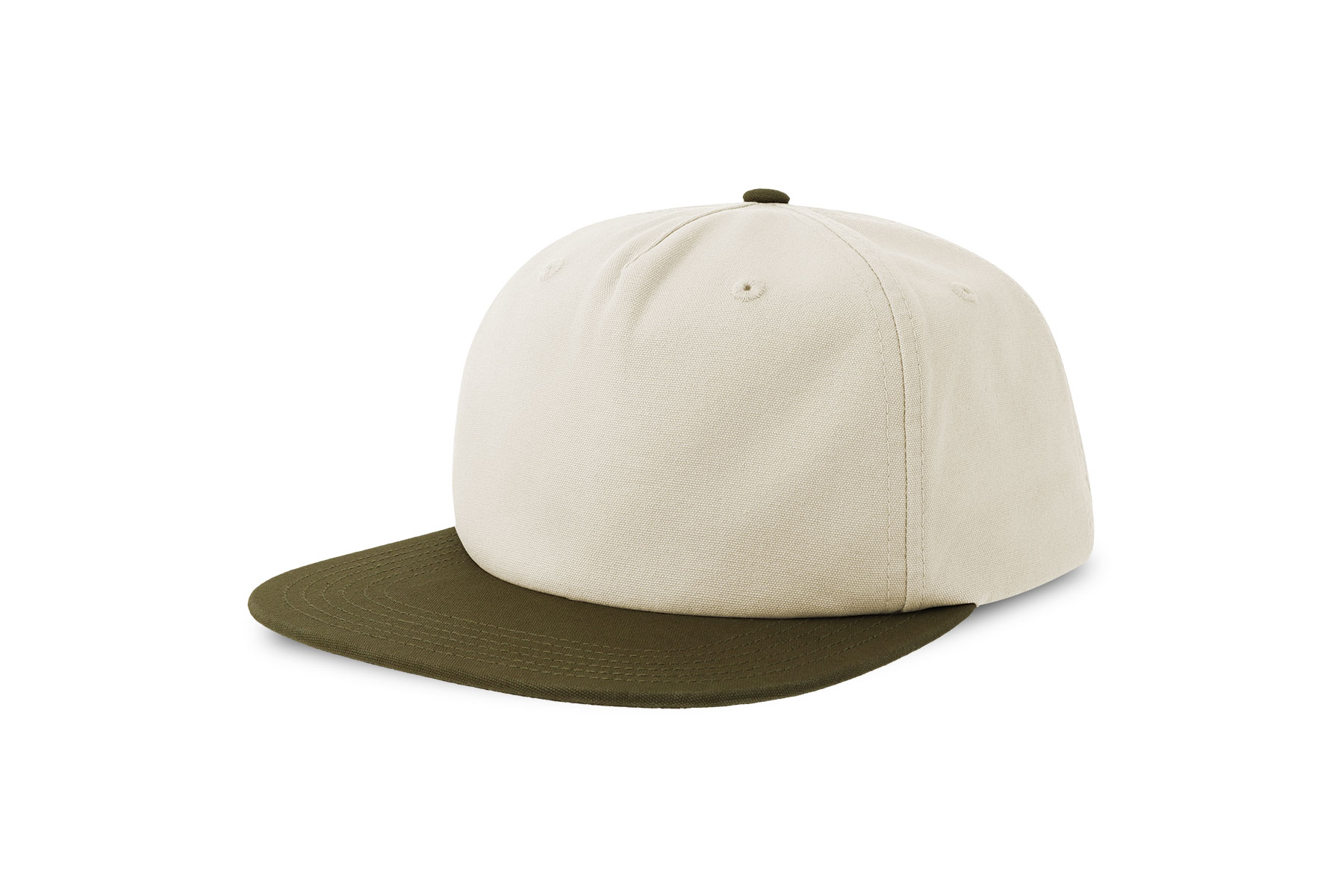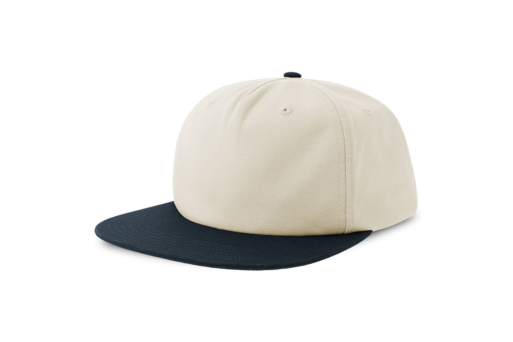 Unstructured old school cap made of a blend of recycled and organic cotton canvas. It features a flat visor and a recycled snapback closure.
